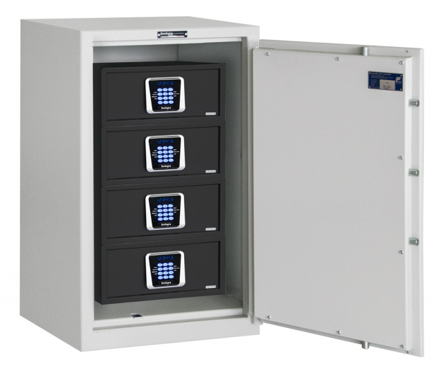 Gli armadi di sicurezza 3000 E-BOX sono allestiti internamente con tesoretti dotati di serratura elettronica