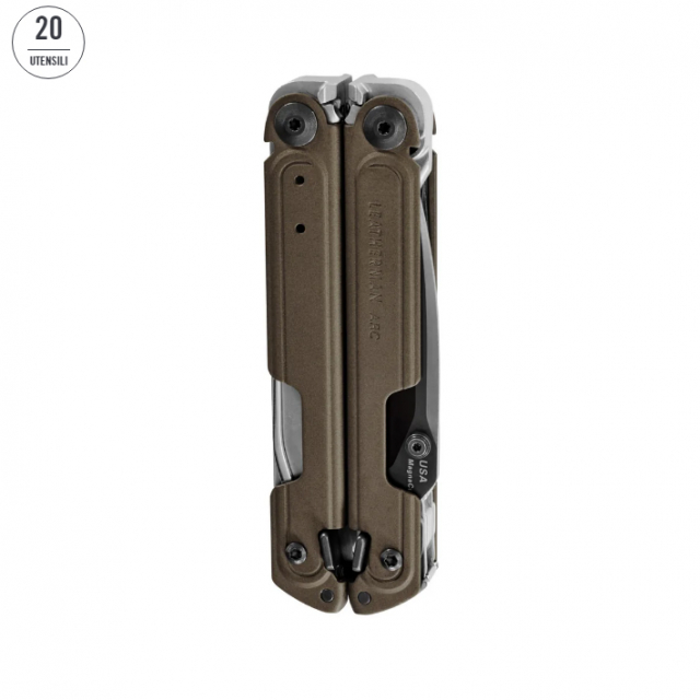 Il rivestimento in DLC sulla lama aggiunge un ulteriore strato per un miglior effetto anti-corrodimento. ARC® è anche dotato del richiestissimo portapunte e, grazie alla tecnologia FREE, ogni attrezzo si apre senza intoppi ed è utilizzabile completamente con una sola mano. Con 20 strumenti, clip da tasca rimovibile, fodero in nylon a quattro tasche e otto inserti a doppia estremità, ARC® traccia un nuovo percorso per i presenti e futuri strumenti multiuso.
