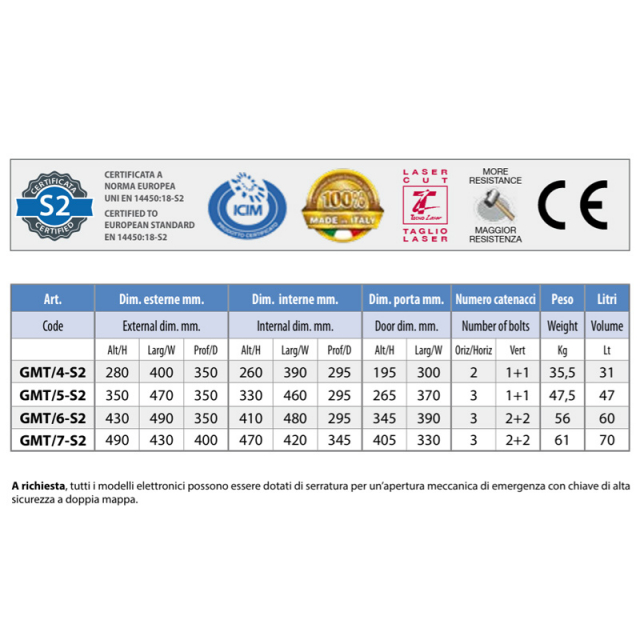 Technomax Cassaforte comb. elettronica Gold Moby Trony S2 Dim H.490 × L.430 × P.400 GMT/7-S2