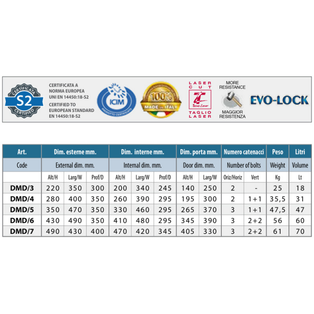 Catenacci orizzontali e verticali superiori protetti da una piastra in acciaio al manganese dello spessore di 3 mm., posizionata in obliquo al fine di ottenere la massima resistenza antitrapano.